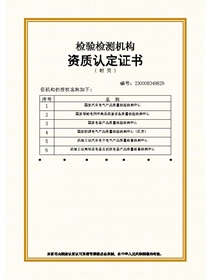 • 機械工業汽車電子電氣產品質量監督檢測中心機構認定-資質證書