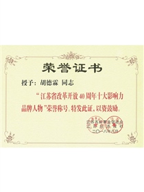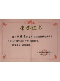 • 江蘇省優(yōu)秀企業(yè)家(獎狀)