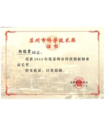 • 2011年蘇州市科技創(chuàng)新創(chuàng)業(yè)市長獎