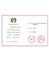 • 中國機械工業(yè)科學技術獎證書-科技進步獎三等獎