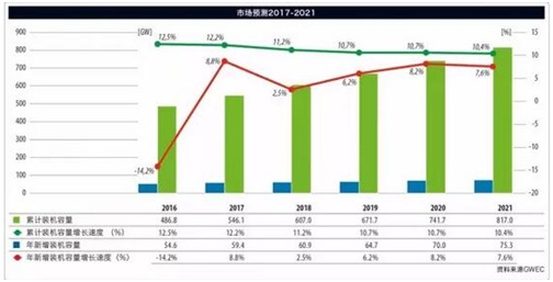 全球風能理事會認為2021年全球風電有望達到800GW
